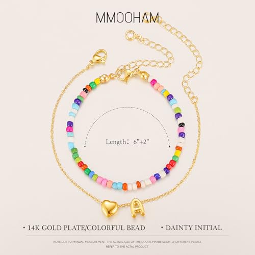 M MOOHAM Initial Bracelets for Women - 14K Gold Plated Dainty Heart Letter A-Z Bracelet Colorful Beaded Initial Bracelet Layered Bracelets Jewelry Gifts for Women Lover Bridesmaids Friends 1