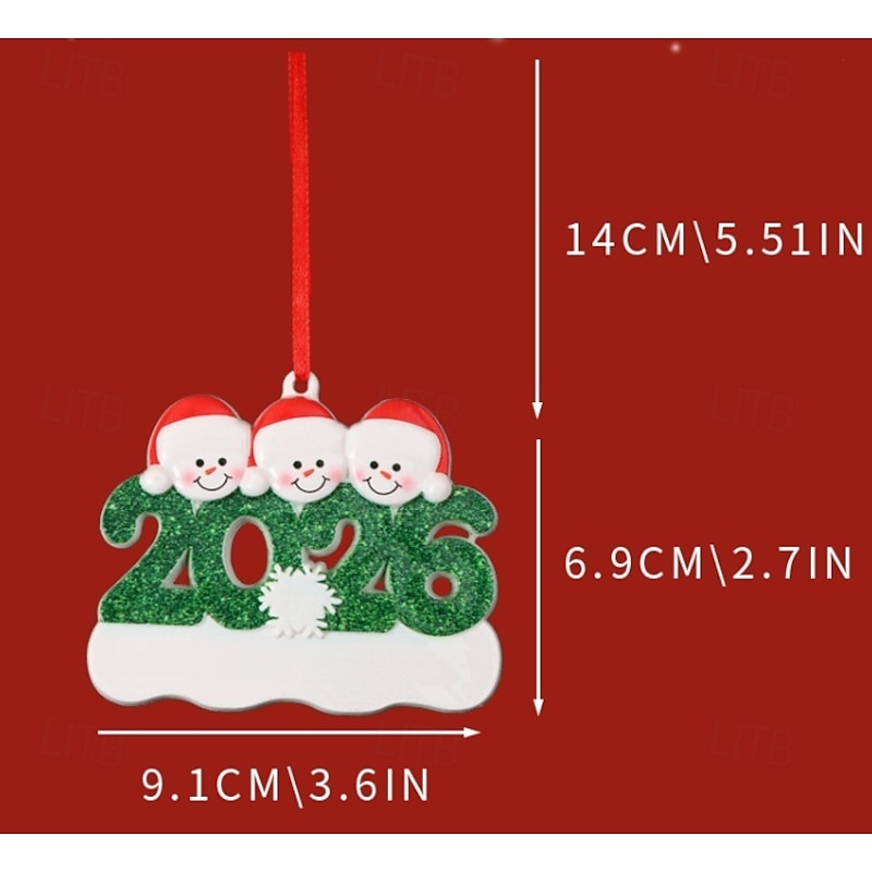2026 Family Christmas Resin Ornaments with Red Ribbon DIY Handwritten Names Christmas Snowman Christmas Tree Decorations Perfect for Valentine's Day, Winter Holidays & Christmas Gifting 2