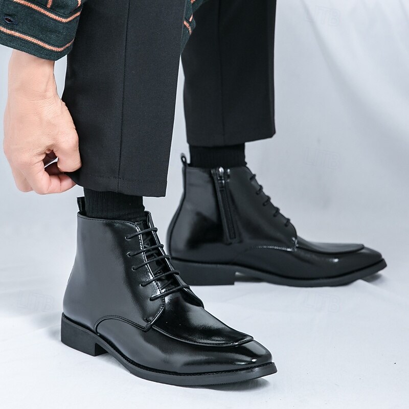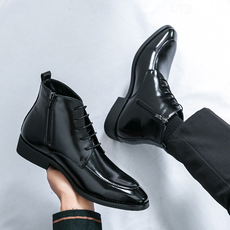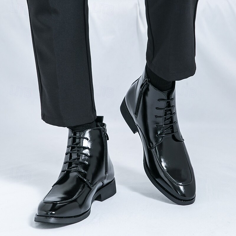 More information about Men's Glossy Black Chelsea Boots with Polished Finish, Elegant Slip-On Dress Shoes for Formal Events, Office Wear and Special Occasions