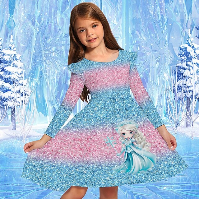 More information about Girls' 3D Graphic Cartoon Snowflake Dress Snowflake Dress Ruffle Dress Long Sleeve Summer Spring Vacation Daily Holiday Beautiful Sweet Kids 4-12 Years Party Dress A Line Dress Knee-length Regular Fit