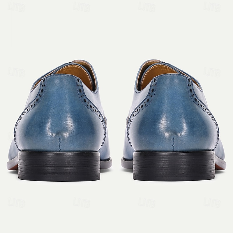 Men's Blue Genuine Cowhide Leather Brogue Dress Shoes – Classic Lace-Up Shoes for Formal Events, Business and Weddings 4