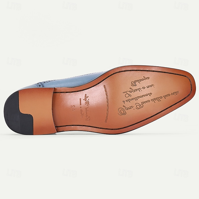 More information about Men's Blue Genuine Cowhide Leather Brogue Dress Shoes – Classic Lace-Up Shoes for Formal Events, Business and Weddings