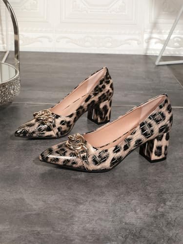 More information about Women's Sexy Leopard Print Pointed Toe Metal Chain Pumps Shoes Low Chunky Block Slip On Patent Leather Heels for Women Wedding Daily Party Dress Shoes 2.36 Inch