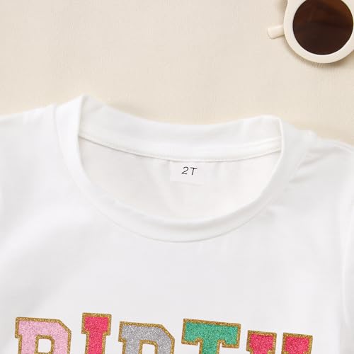 IZYJOY Birthday Girl Shirts Toddler 2nd 3rd 4th 5th 6th Birthday Glitter Patch T-Shirt Bday Outfit Short Sleeve Tee Tops 2