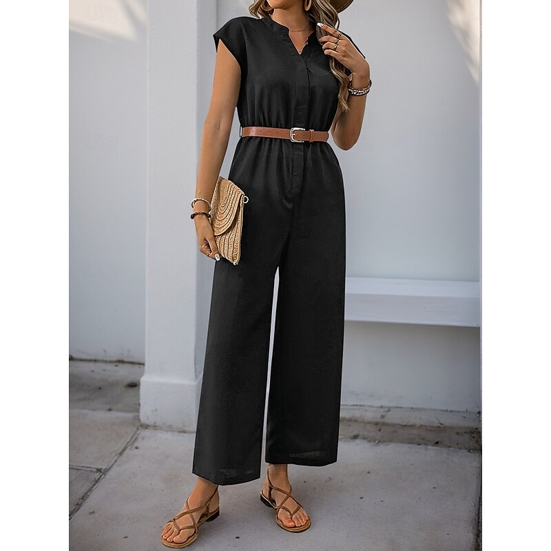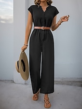 More information about Women's Normal Jumpsuit Streetwear Solid Color Short Sleeve V Neck Buttons High Waist Vacation Office Regular Fit Black Summer