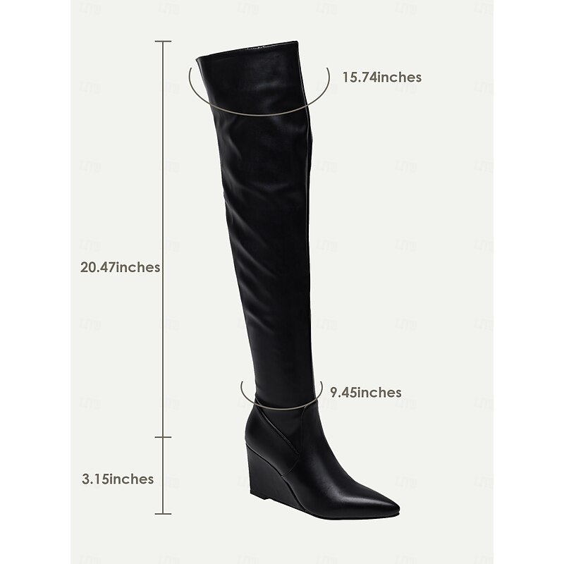 Women's Black Over-the-Knee Wedge Heel Boots – Sleek Faux Leather, Pointed Toe, Winter Fashion for Casual or Night Out 14