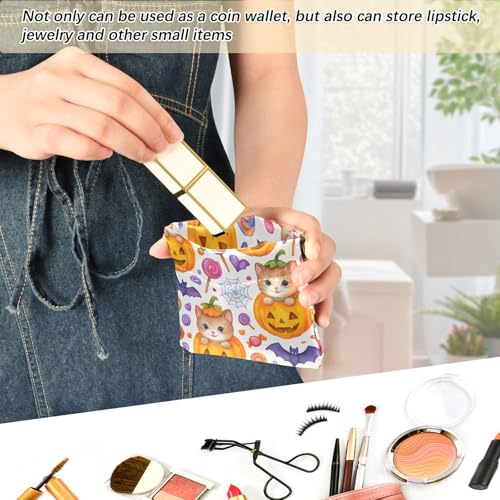 Cute Halloween Pumpkin Cat Squeeze Coin Purse, Leather Coin Purse, Mini Wallet, Compact and Portable, Unisex 6