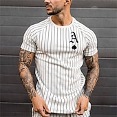HOT ! Men's Summer Tops Gym Shirt Fitness Shirt Crew Neck Short Sleeves Casual Daily Gym Quick dry High Stretch Sweat wicking Patchwork Striped White Red Hot Stamping Activewear Polyester