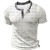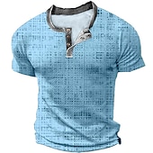 Mens Graphic Shirt Squares Casual 3D Blue Summer Cotton Waffle Henley Tee Clothing Apparel Print Outdoor Short Sleeve Button Fashion Designer Green 3