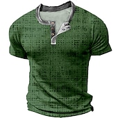 More information about Mens Graphic Shirt Squares Casual 3D Blue Summer Cotton Waffle Henley Tee Clothing Apparel Print Outdoor Short Sleeve Button Fashion Designer Green