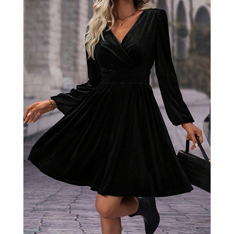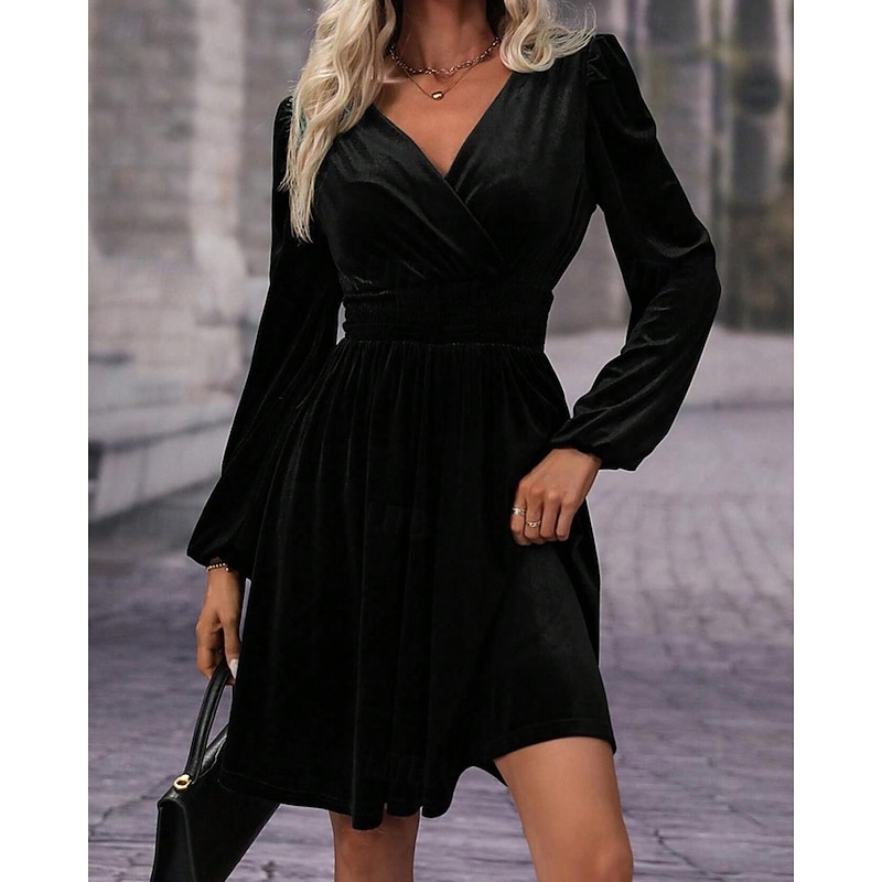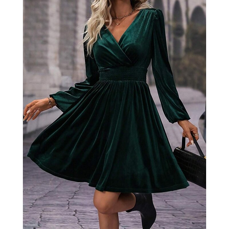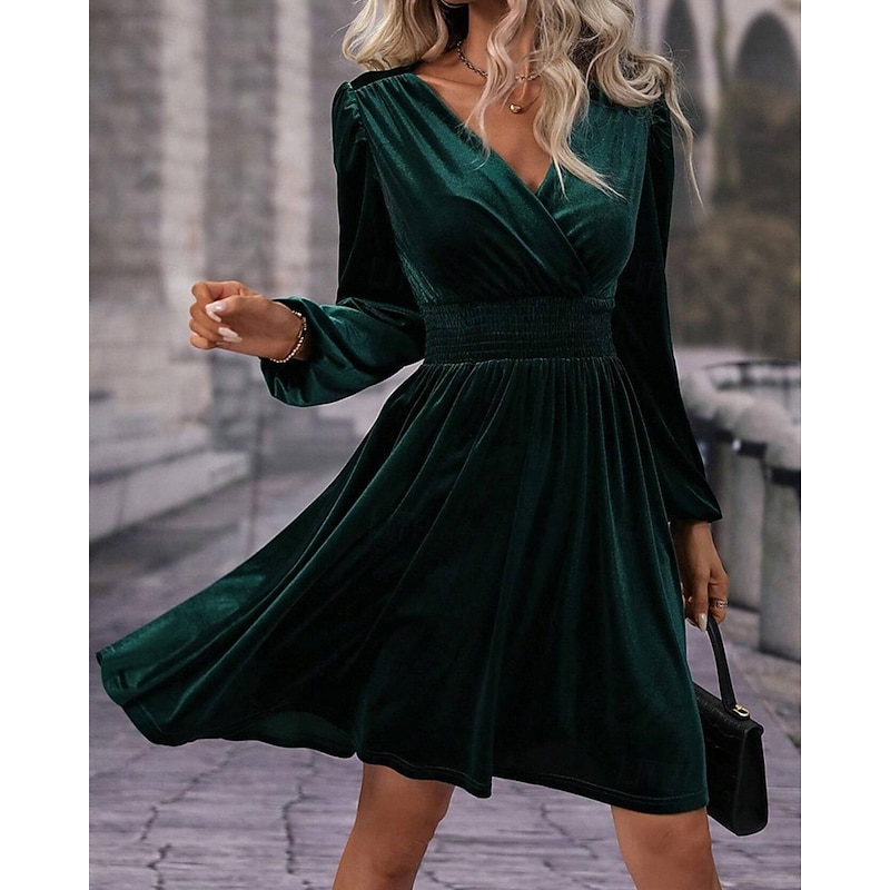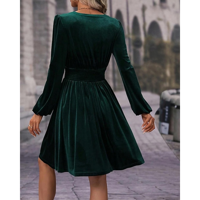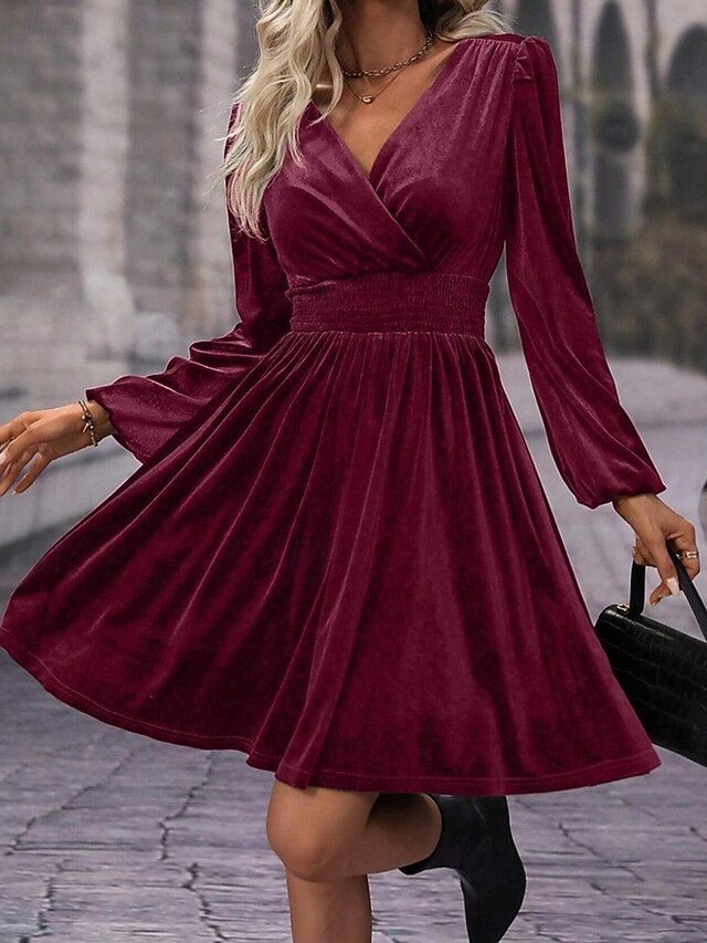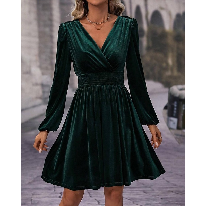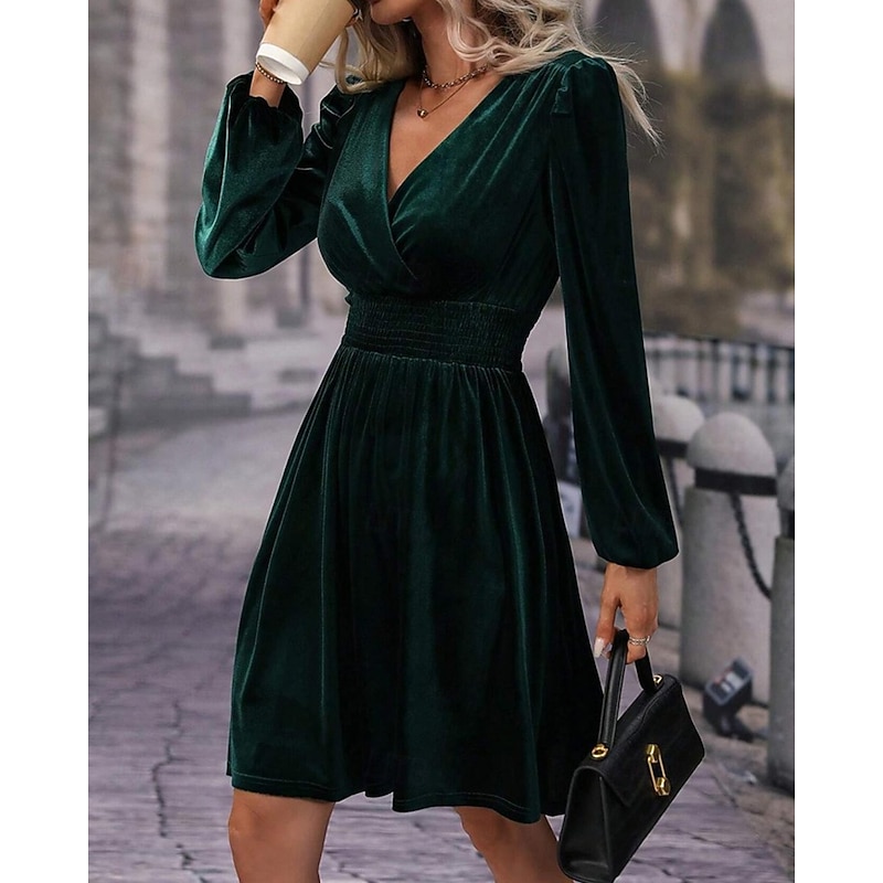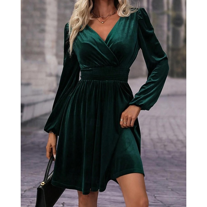 More information about Women's Mini Dress Velvet Dress Winter Dress Cocktail Dress Fashion Modern Evening Party Weekend Regular Fit Plain Long Sleeve V Neck Black Red Green Summer