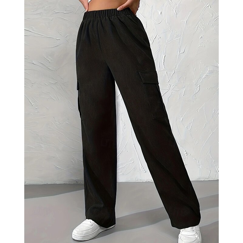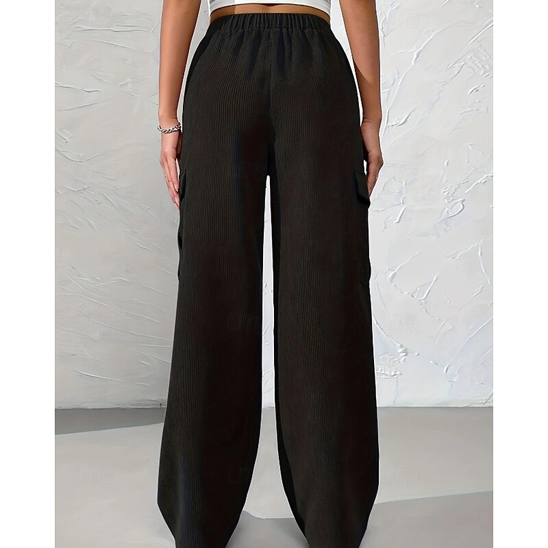 More information about Women's Wide Leg Slacks Streetwear Casual Full Length Natural Plain Pocket Elastic Waist Comfortable Street Daily Wear Weekend Black Brown Fall Regular Fit