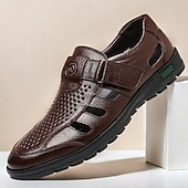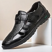 More information about Men's Black Faux Leather Sandals – Breathable Cut-Out Design with Adjustable Strap, Comfortable Summer Shoes for Casual and Outdoor Wear