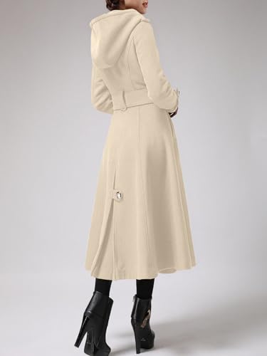 Cicy Bell Womens Long Double-Breasted Hooded Coat Winter Warm Wool Trench Coat with Belts 4