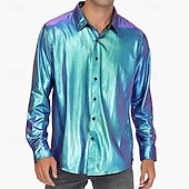 More information about Men's Waffle Shirt Casual Shirt Button Up Shirt Blue Long Sleeve Plain Laser Lapel Vacation Hawaiian Button-Down Clothing Apparel Polyester Fashion Casual Comfortable