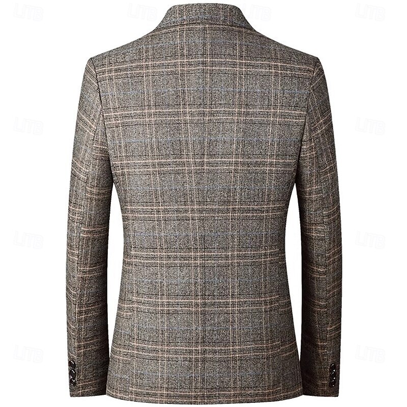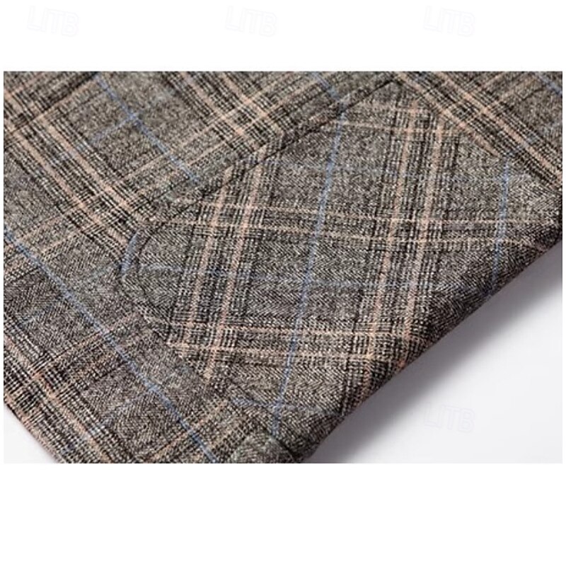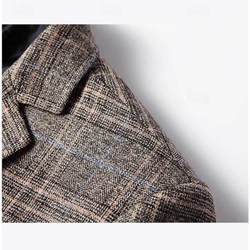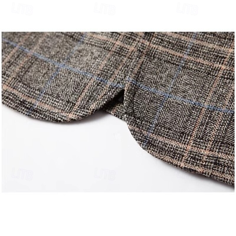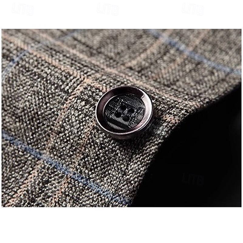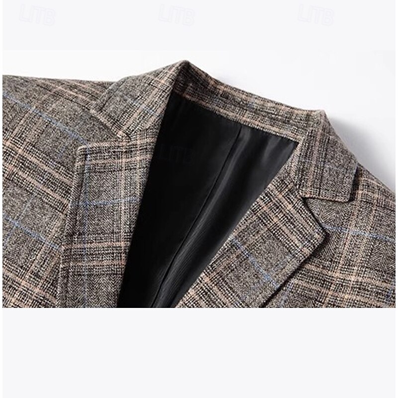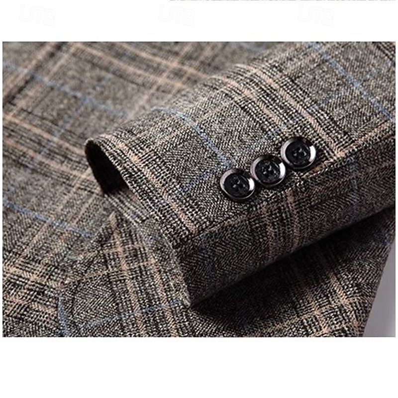 More information about Men's Blazer Jacket School Formal Performance Classic All Seasons Polyester Vicose Plaid No-Iron Single Breasted Two-button Blazer Coffee Gray