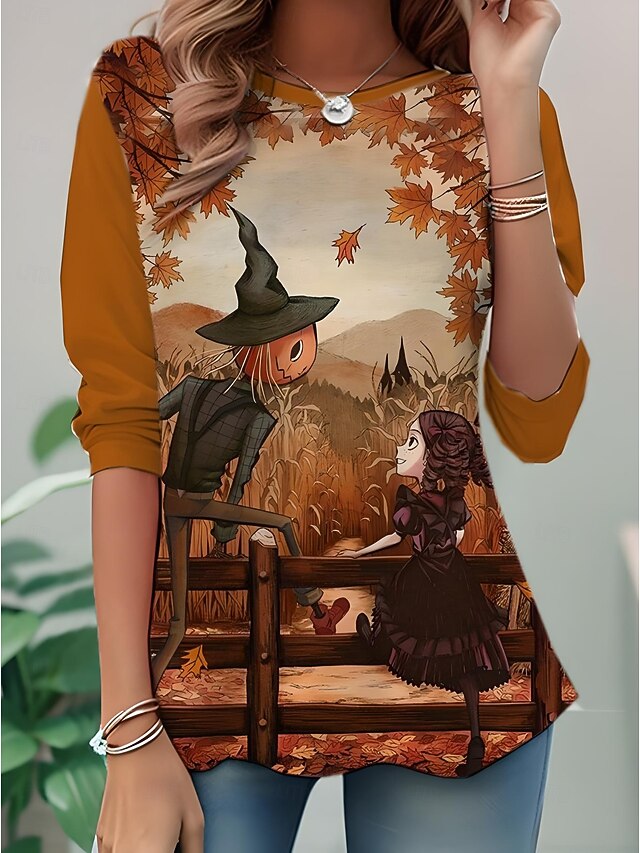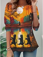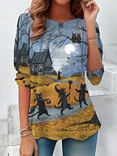 More information about Halloween Women's T shirt Witch Crew Neck Long Sleeve Tunic Graphic Skull Cat Vintage Stylish Round Neck Regular Tops Daily Print Yellow Blue Orange Green Fall Winter
