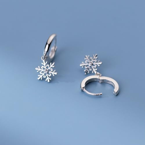 HOT ! SLUYNZ Sterling Silver Snowflake Hoop Earrings for Women Teens Christmas Snowflake Hoop Earrings Drop