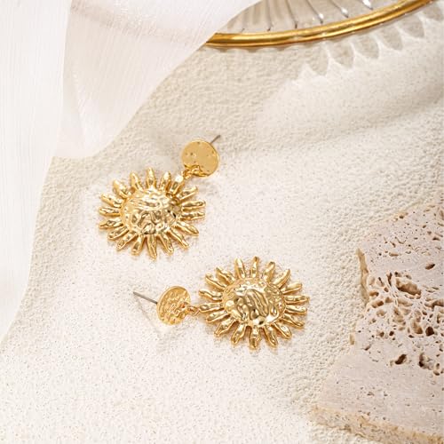 Gold/Silver Sun Dangle Earrings for Women Trendy Round Earrings Statement Earrings Vintage Boho Earrings 4