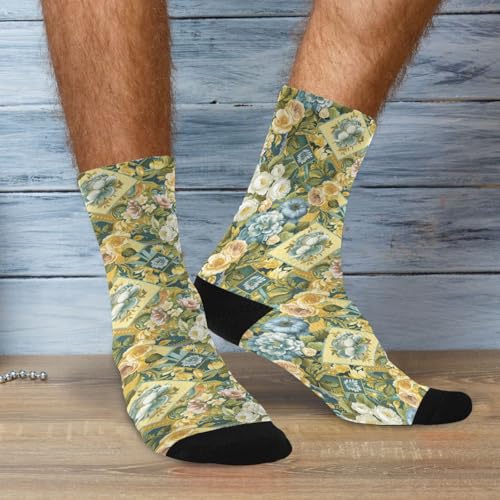 HOT ! Square Scarf Pattern Design Art Nouveau Style soccer crew socks running breathable wicking black crew socks (2-Pair)