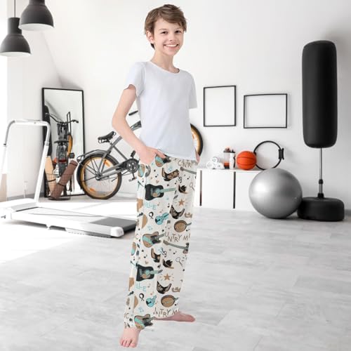 Boy's Pants Country Musical Jogger Pants Elastic Waist Long Bottoms Trousers with Pockets 6-14 Years 6