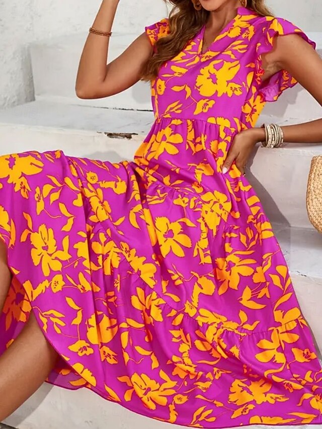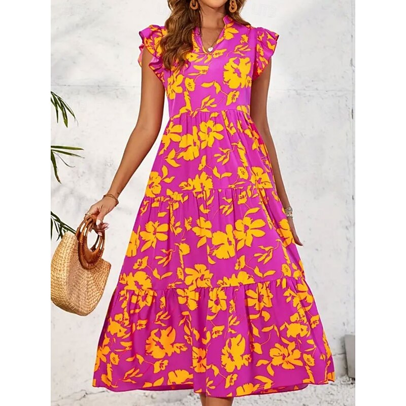 Women's Maxi Dress Casual Dress Swing Dress A Line Dress Tank Dress Stylish Casual Vacation Daily Regular Fit Floral Sleeveless V Neck Yellow Purple Summer 6