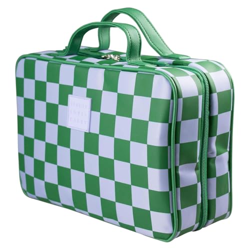 HOT ! Green Gambit Checkered Hanging Travel Bag, Toiletry Bag, Makeup Bag for Women, Portable Water-resistant Small Travel Bag for Toiletries & Cosmetic Essentials