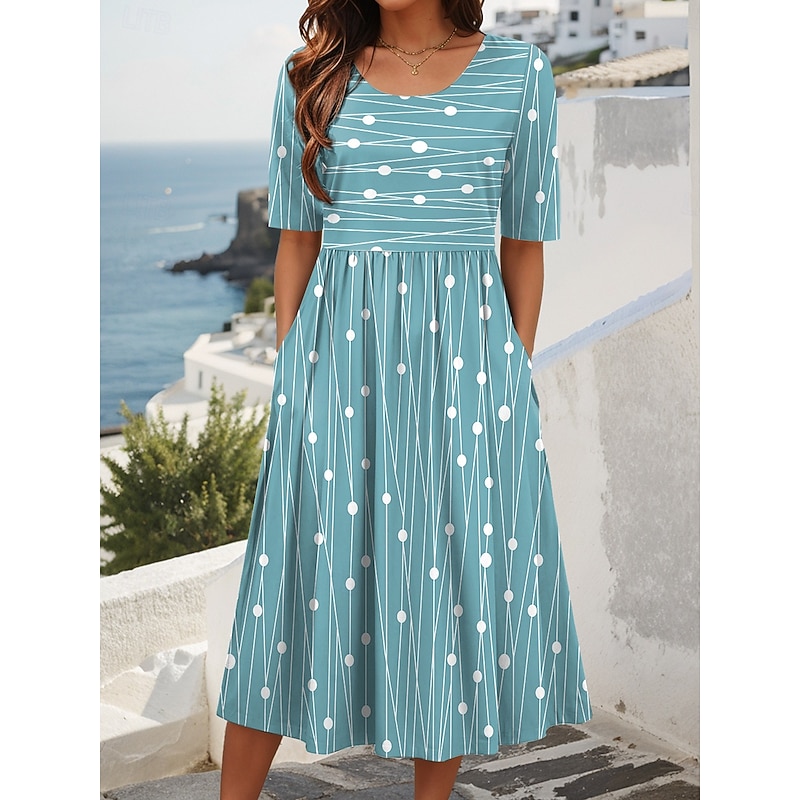 More information about Women's Midi Dress Summer Dress Pleated Dress Vacation Casual Holiday Loose Fit Graphic Striped Half Sleeve Crew Neck Light Green Pink Blue Purple Summer