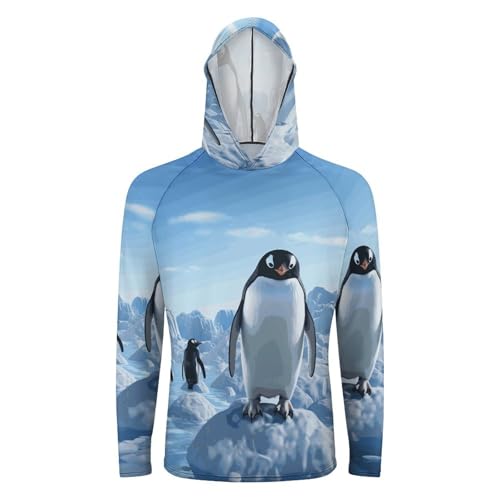 Men's Sun Shirts UPF 50+ Rash Guard Long Sleeve Sun Protection Hoodie Penguin Antarctica Ice Lightweight Shirt 2XL White 2