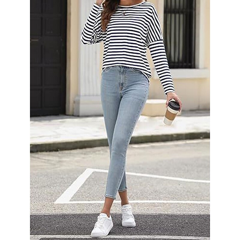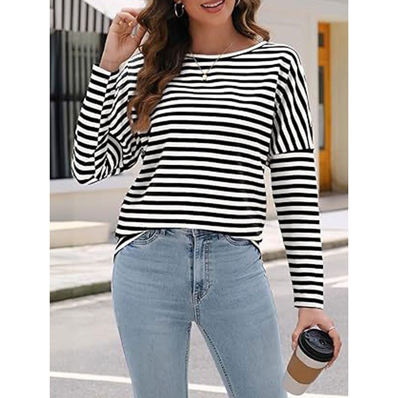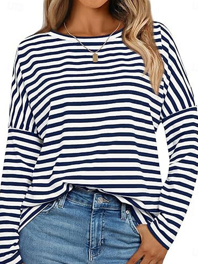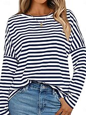 More information about Women's Pullover Sweatshirt Hoodies Striped Fashion Streetwear Casual Long Sleeve Crew Neck Regular Tops Street Dailywear Print Black Blue Spring Fall