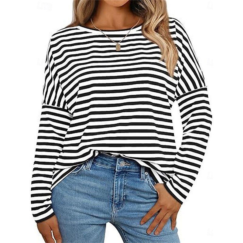 HOT ! Women's Pullover Sweatshirt Hoodies Striped Fashion Streetwear Casual Long Sleeve Crew Neck Regular Tops Street Dailywear Print Black Blue Spring Fall