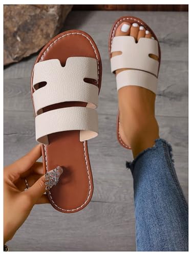 GORGLITTER Women's Wide Width Strappy Sandals Dressy Open Toe Summer Beach Comfortable Flat Sandals 4