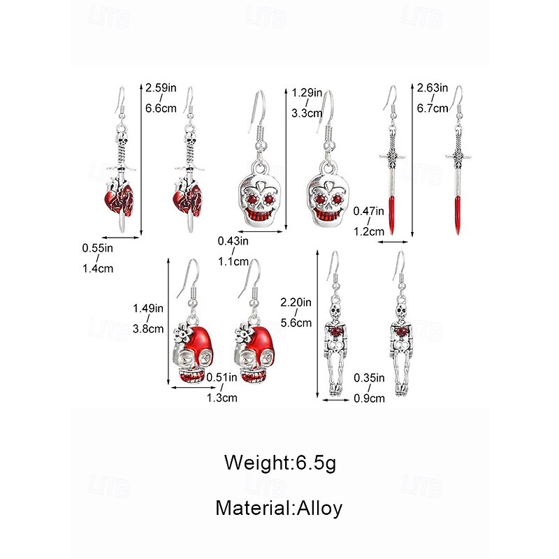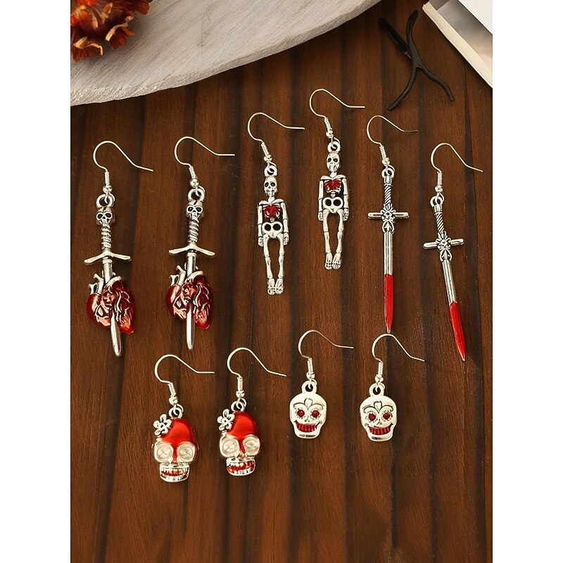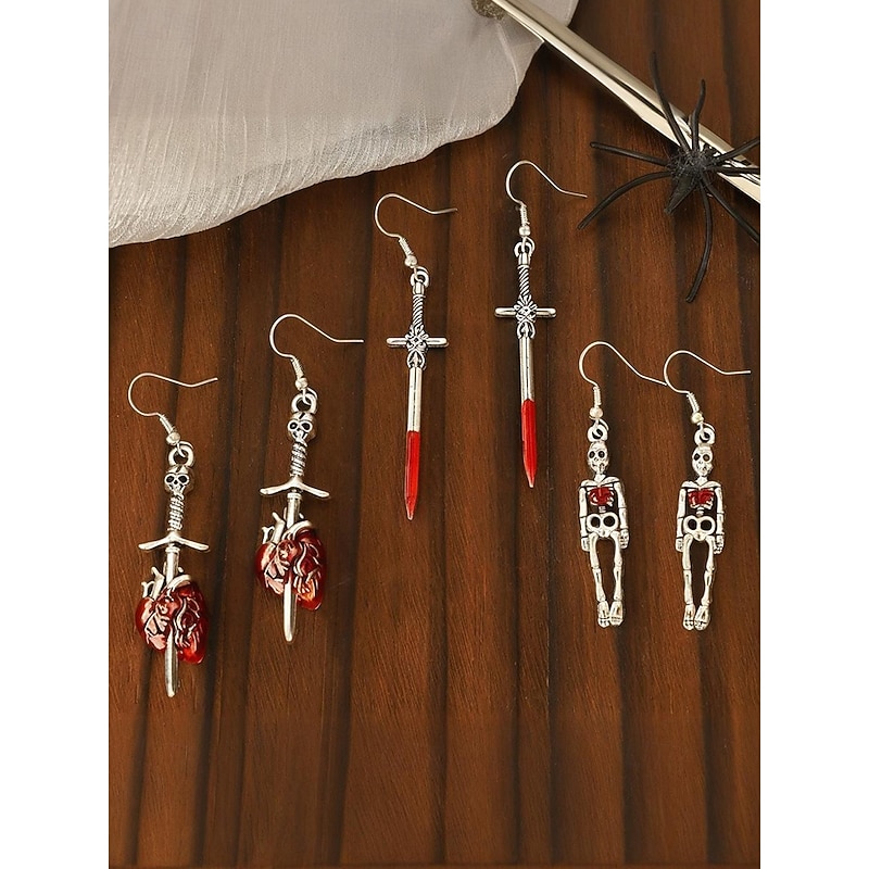 $7.99 - Women's Halloween Gothic Dangle Earrings Set — Assorted Skeleton, Skull & Blood Sword Drops, Lightweight Alloy Hook Design with Red Enamel Accents, Statement Jewelry for Costume Parties 2025. Shop for cheap Halloween Accessories online? Buy at lightinthebox.com on sale today!