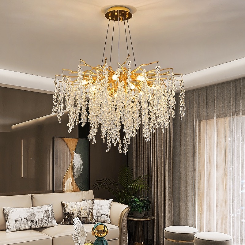 HOT ! LED Chandeliers Modern Luxury, 60cm 8-Light Gold Crystal for Home Interiors Kitchen Bedroom Iron Art Tree Branch Lamp Creative Lamp Light Warm White/White 110-240V