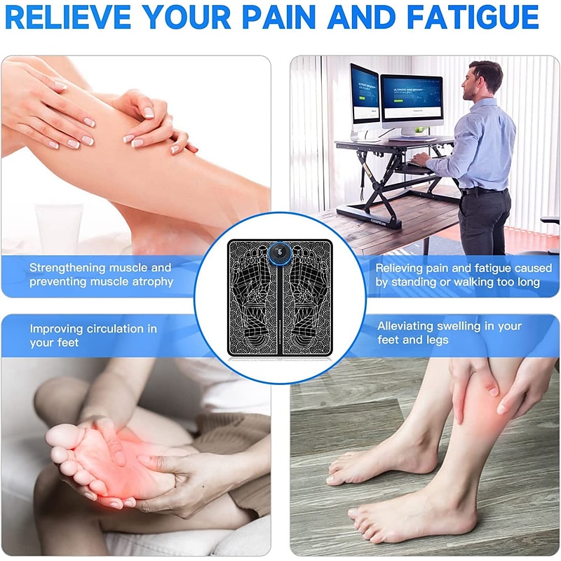 EMS Pulse Electric Foot Massager Foot Therapy Machine Foot Pad Intelligent Acupuncture Foot Massage Pad Mat Muscle Stimulation