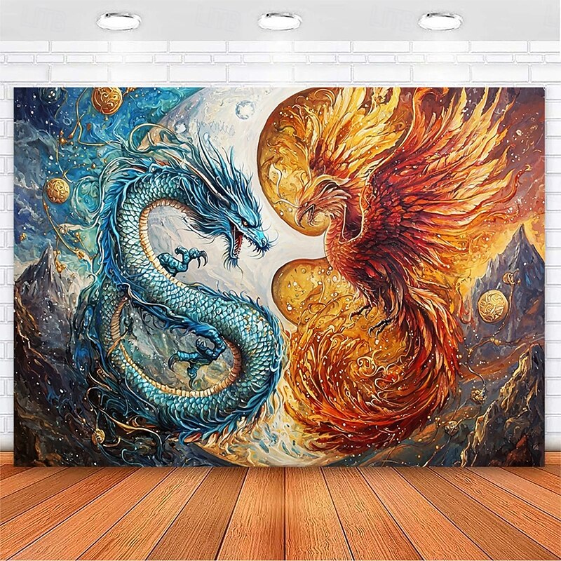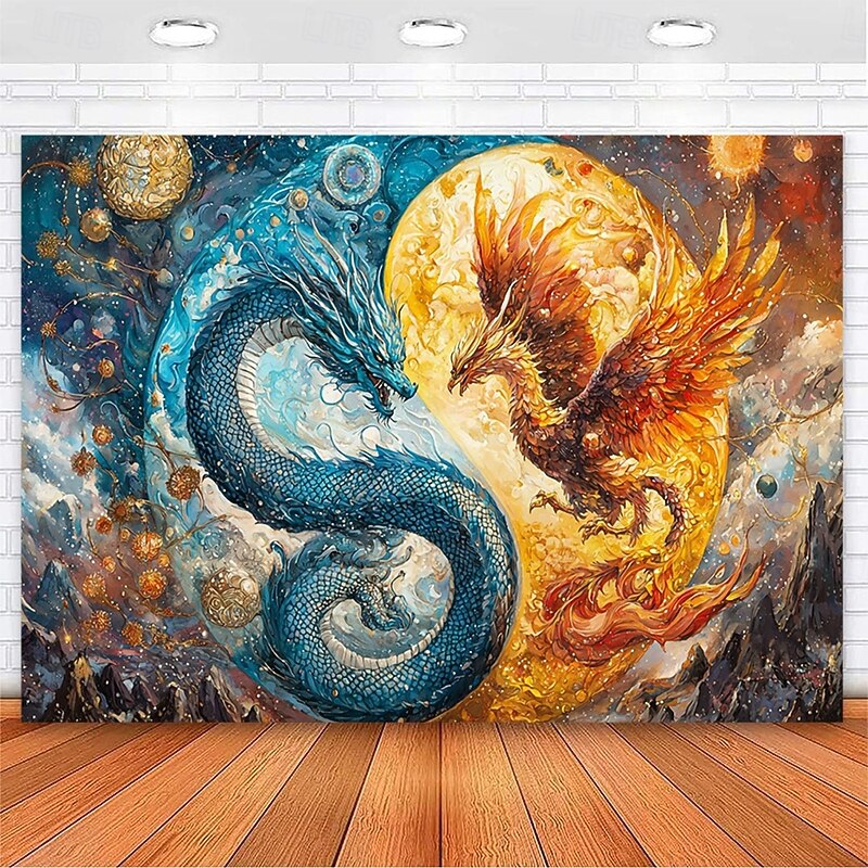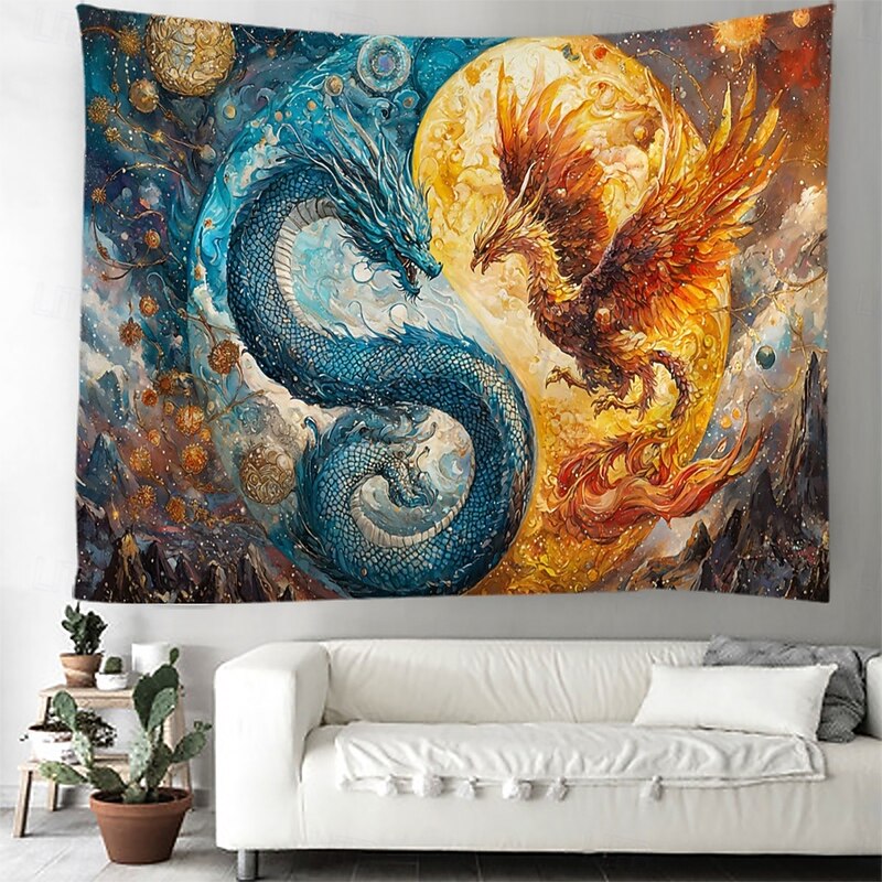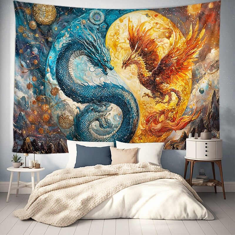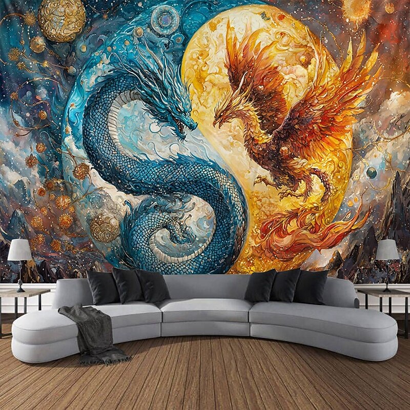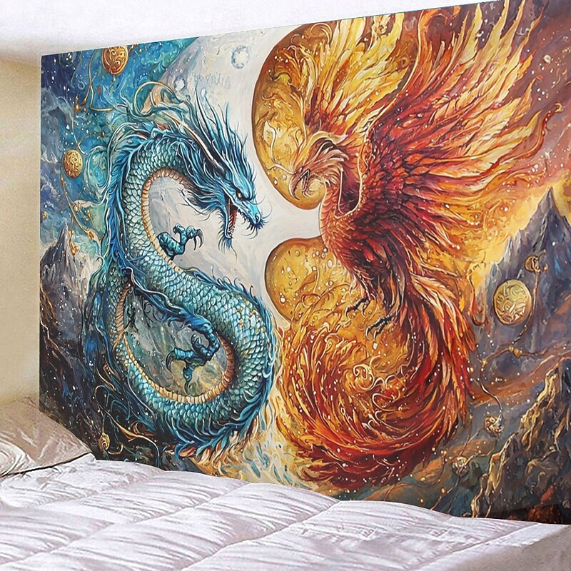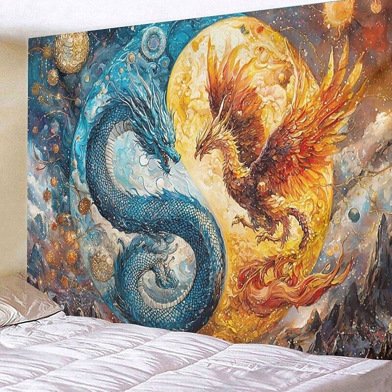 HOT ! Fantasy Hanging Tapestry Phenix Dragon Wall Art Large Tapestry Mural Decor Photograph Backdrop Blanket Curtain Home Bedroom Living Room Decoration
