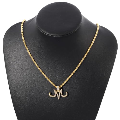 HOT ! Hip Hop Punk Micro Pave Zircon Majin Buu Mark M Pendant Necklace (gold)
