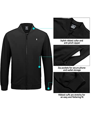 • CLASSIC DESIGNS: Stylish rib stand-up collar and full-zip closure of men's varsity Jackets; Ribbing on collar, cuffs, and hem is not only elastic, easy to wear, and snug fit, but also prevents cold air from penetrating. The anti-pinch design of the full zip jacket not only makes dressing more convenient and fast, but also avoids contact with skin, friction, and other clothing hooked up.