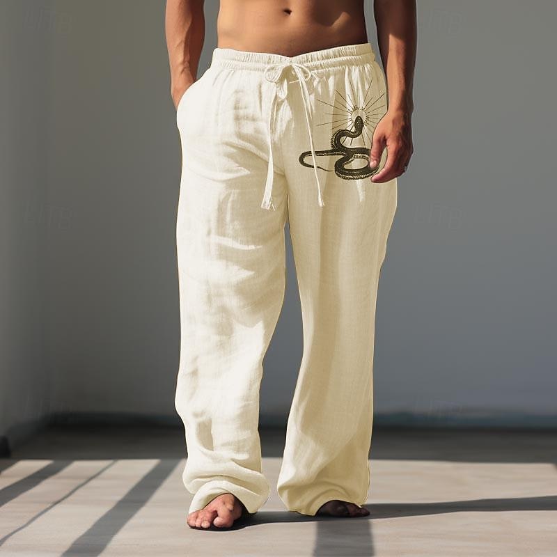 HOT ! Men's Snake Linen Pants Pants Trousers Baggy Pants Mid Waist Vintage Outdoor Daily Wear Streetwear Fall & Winter Black White Green