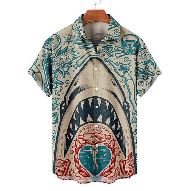 More information about Men's Shark Tropical Shirt Summer Hawaiian Shirt Aloha Shirt Short Sleeve Shirt Turndown Casual Outdoor Street Casual Daily Pink Red Blue S M L