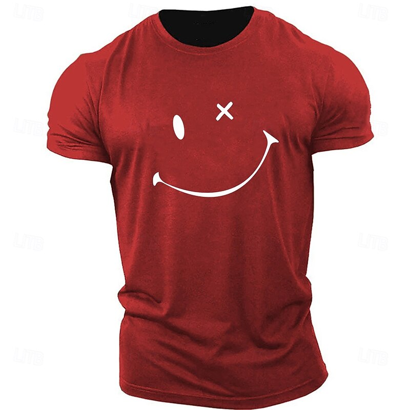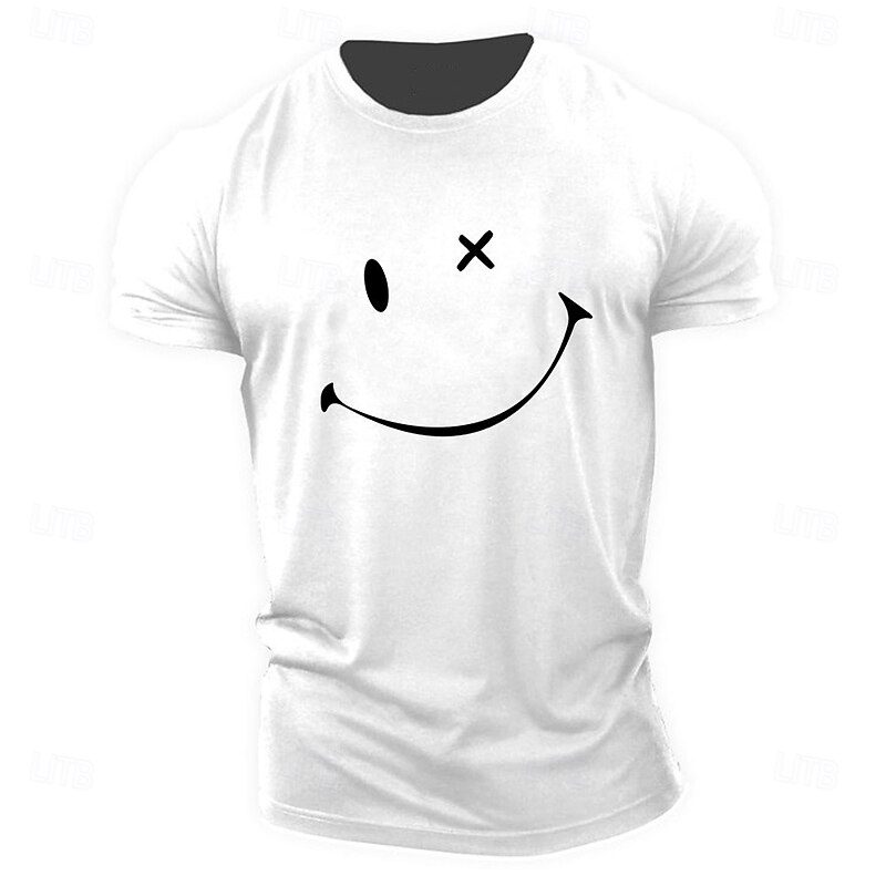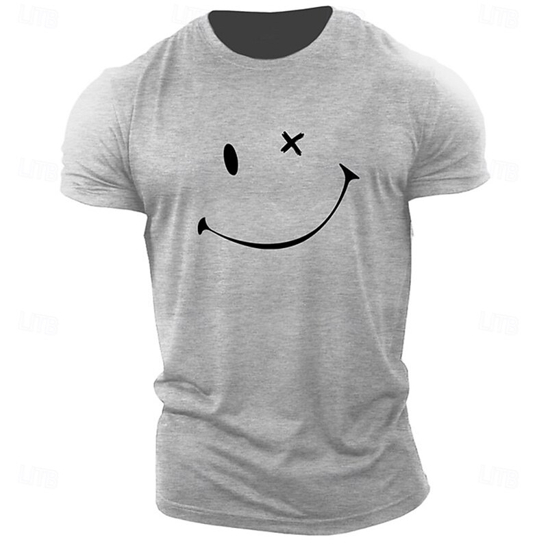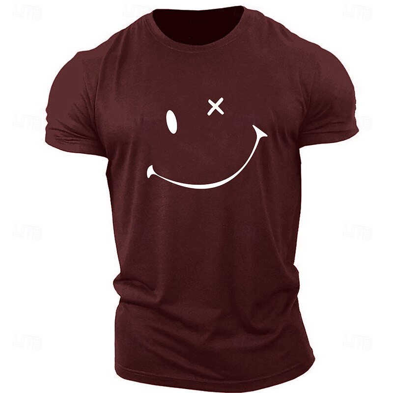 Men's Graphic Tee: Distressed X-Eye Smiley Face Print, Casual Short Sleeve T-Shirt 23