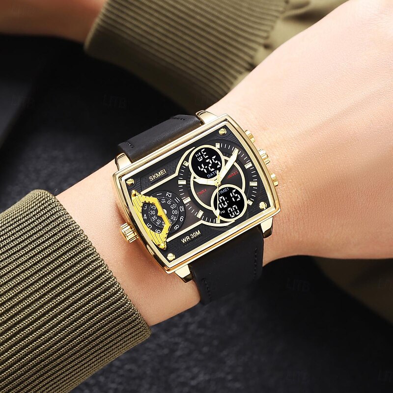 SKMEI Men Digital Watch Outdoor Sports Fashion Wristwatch Luminous Stopwatch Alarm Clock Countdown Steel Leather Watch 30