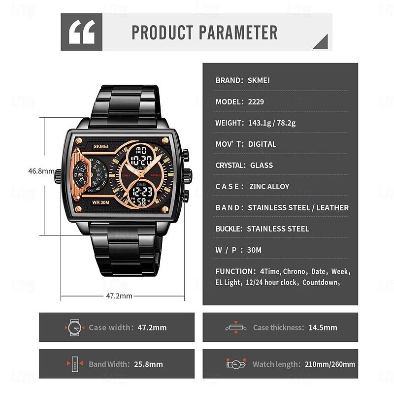 $30.49 - SKMEI Men Digital Watch Outdoor Sports Fashion Wristwatch Luminous Stopwatch Alarm Clock Countdown Steel Leather Watch 2025. Shop for cheap Digital Watches online? Buy at lightinthebox.com on sale today!