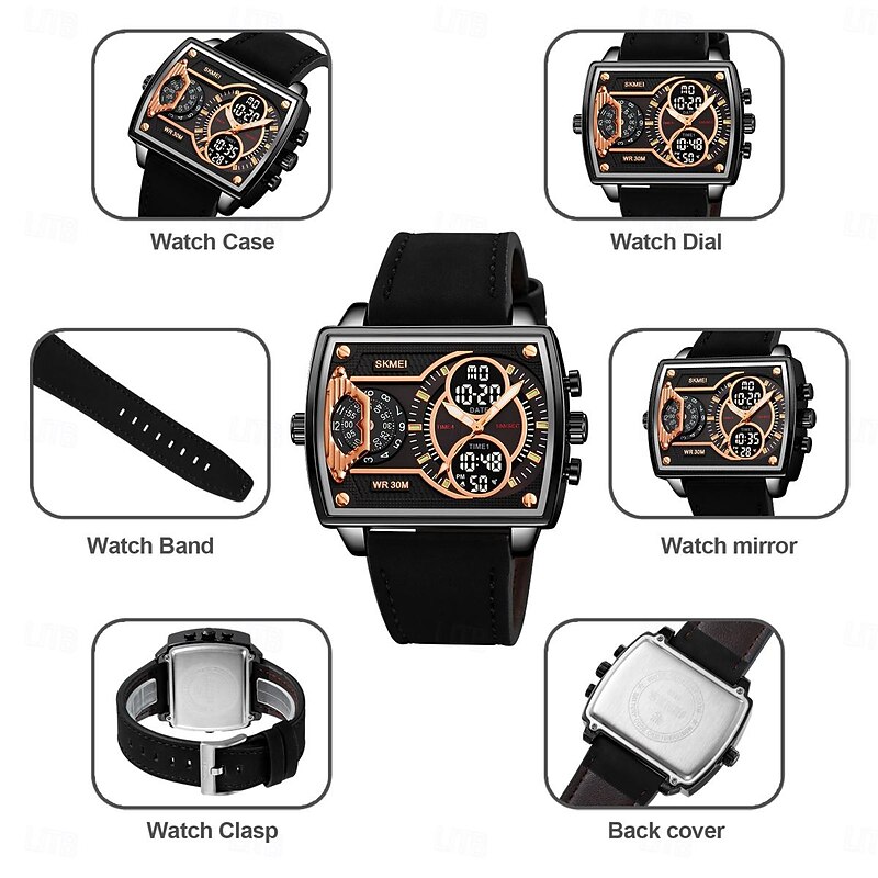SKMEI Men Digital Watch Outdoor Sports Fashion Wristwatch Luminous Stopwatch Alarm Clock Countdown Steel Leather Watch 6