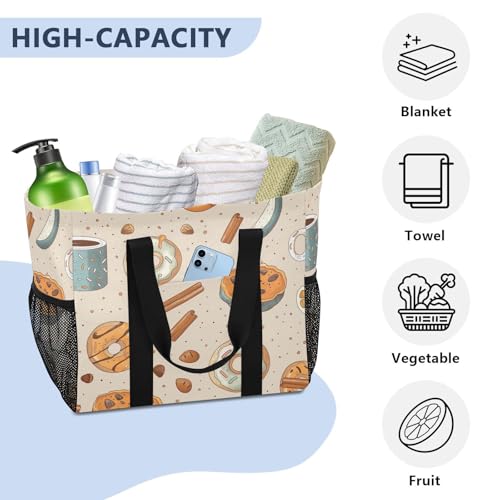 Doughnut Waterproof Tote Bag,Multi-Purpose Kitchen Reusable Grocery Bags, Travel, Beach & Laundry Organizer 15.4 X 9.8 X 12.8 inch 7