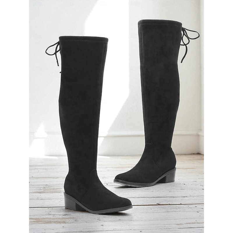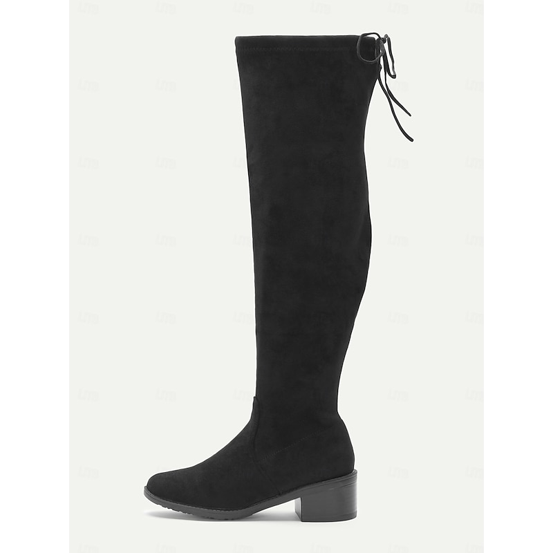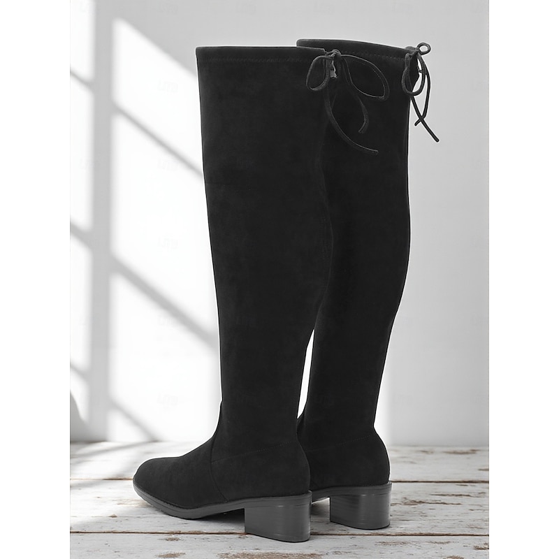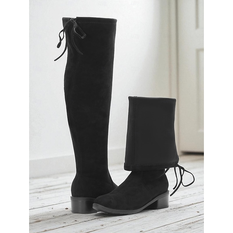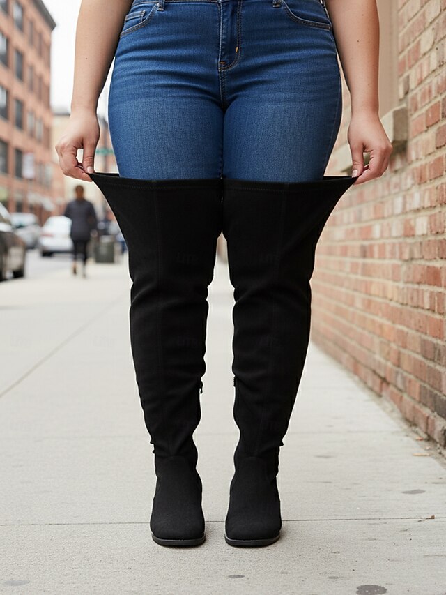 Women's Black Extra Wide Fit Over-the-Knee Boots, Stylish and Comfortable Boots for Plus-Size, Perfect for Casual Street Style & Fall/Winter Wear 4