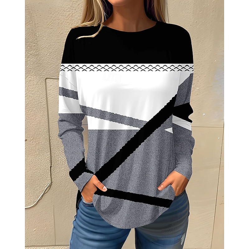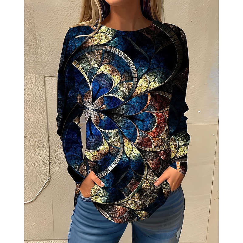 Highlights [Fabric] : Crafted from high-quality polyester, this women's T-shirt offers a soft and breathable fabric that ensures comfort and easy movement, making it suitable for fall and winter seasons. [Fit] : Designed with a regular fit, this long-sleeve top provides a relaxed silhouette that effortlessly combines casual and chic elements for everyday wear. [Design Highlights] : Showcasing a vibrant floral and painting-inspired print, this T-shirt features a subtle round neckline and long sleeves for a timeless and versatile style. The micro-elasticity ensures a comfortable fit, enhancing its appeal. [Occasions] : Perfect for holidays and weekends, this T-shirt is an ideal choice for casual outings, leisurely activities, and seasonal gatherings. It adds a touch of nature-inspired beauty to any look, embracing a balance of style and ease. [Size Range] : Available in a variety of sizes, including S, M, L, XL, and 2XL, this piece is designed to cater to diverse body shapes, ensuring a flattering fit for many.