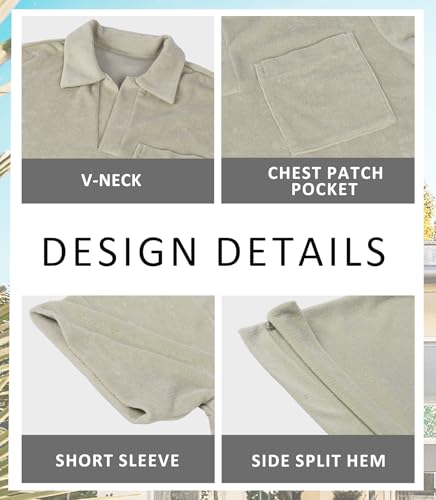 Men's Terry Towel Polo Shirt with Short Sleeve Chest Pocket Casual Unisex Top 4
