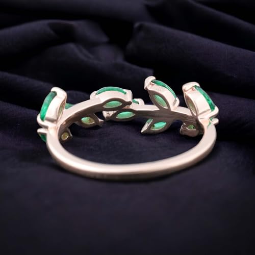 emerald wedding band marquise cut green stone solid gold adjustable band nature-inspired leaf ring may birthstone gift for her 5