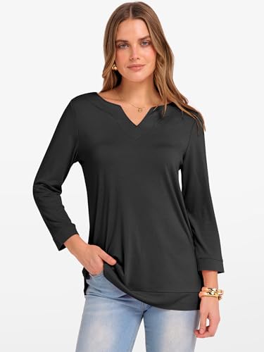 ANRABESS Womens 3/4 Length Sleeve Tops V Neck Basic Tee Shirts 2025 Spring Summer Dressy Casual Tunic Blouses Outfits 2